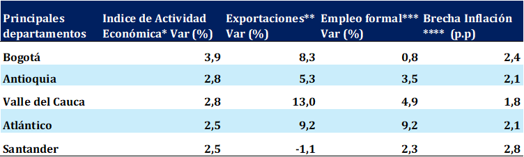 Nota: cifras de inflación y empleo formal se toman de la ciudad capital.